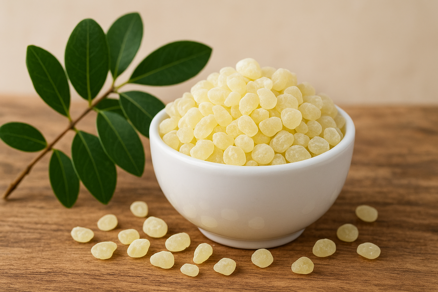 Masticha se po ztvrdnutí jeví jako světle žluté kapičky, které se po ztvrdnutí běžně označují jako „slzy mastichy“. Nabízí jemně kořeněnou, pryskyřičnou a mírně aromatickou chuť.